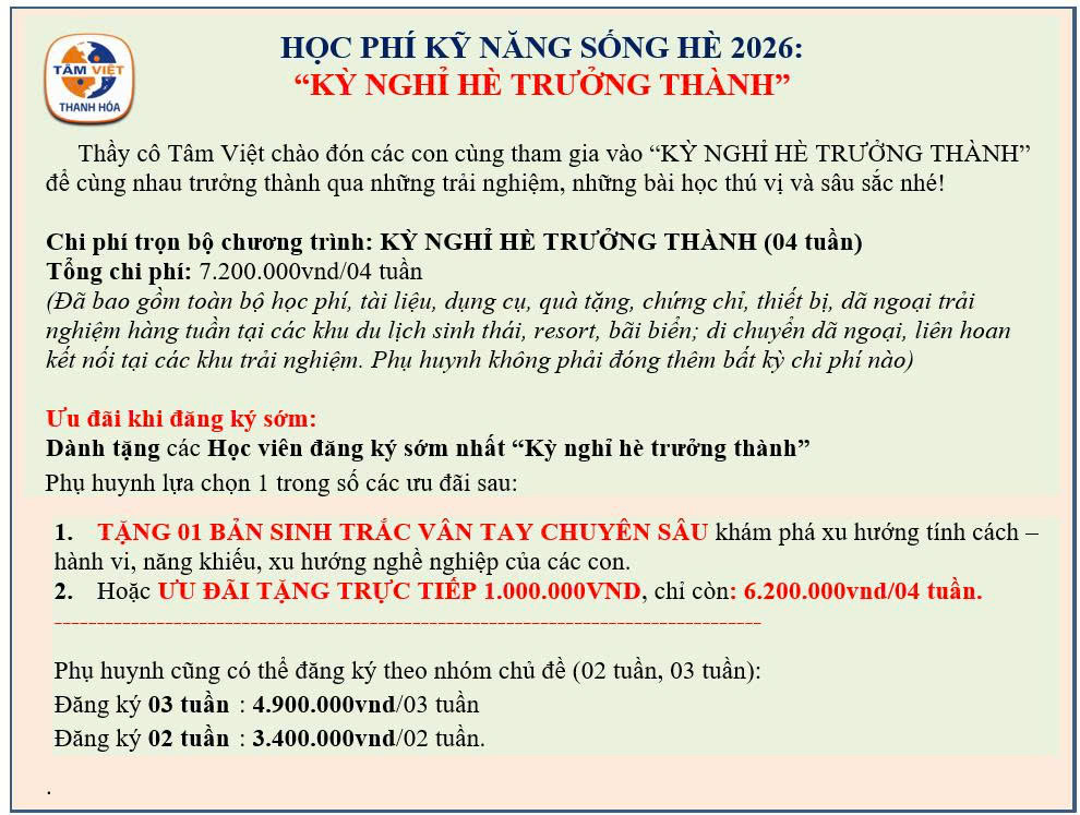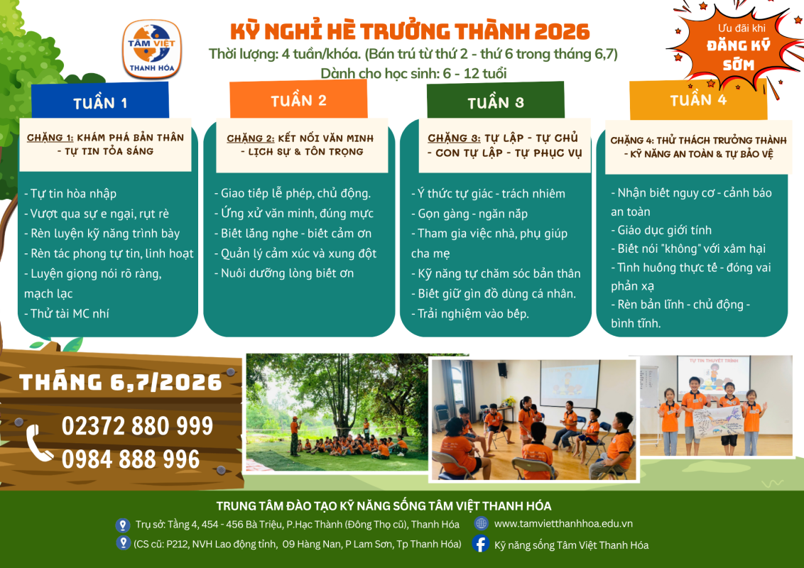 KỸ NĂNG SỐNG – KỲ NGHỈ HÈ TRƯỞNG THÀNH 2026