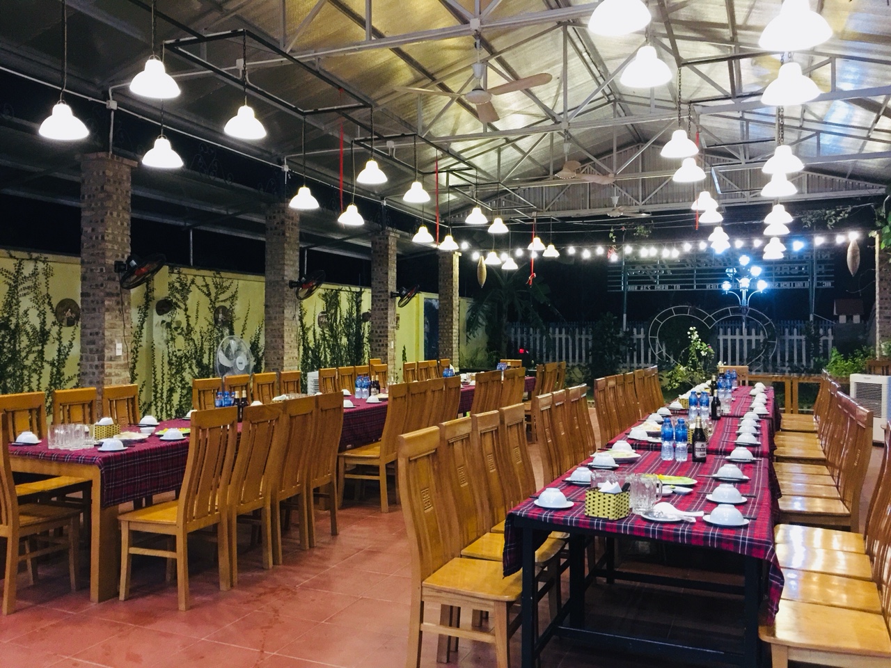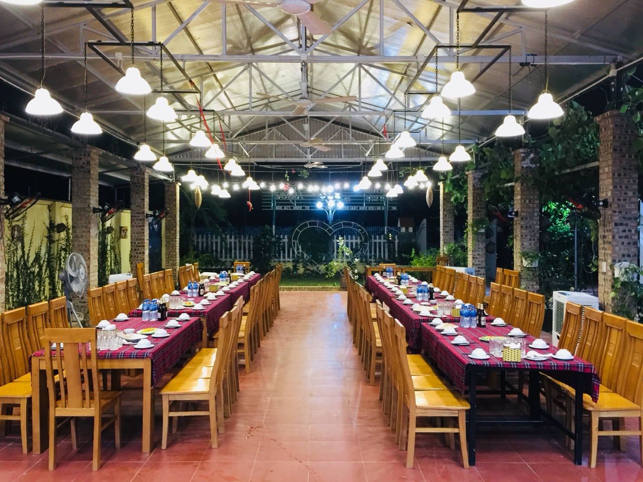 Không gian ăn ấm áp và khu vực tổ chức đốt lửa trại