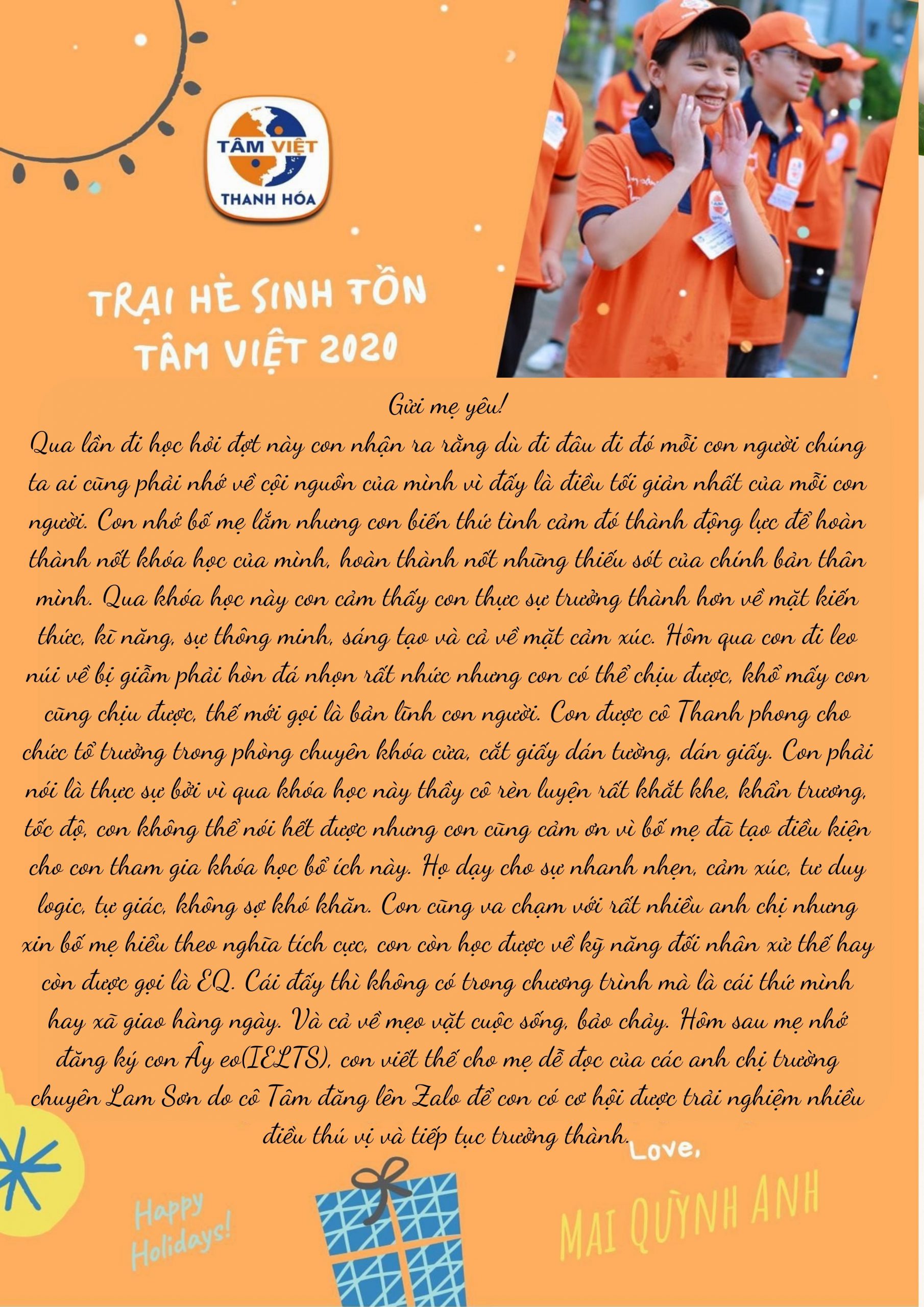 Tham khảo thêm: Cảm nhận của học viên Trại hè sinh tồn Tâm Việt